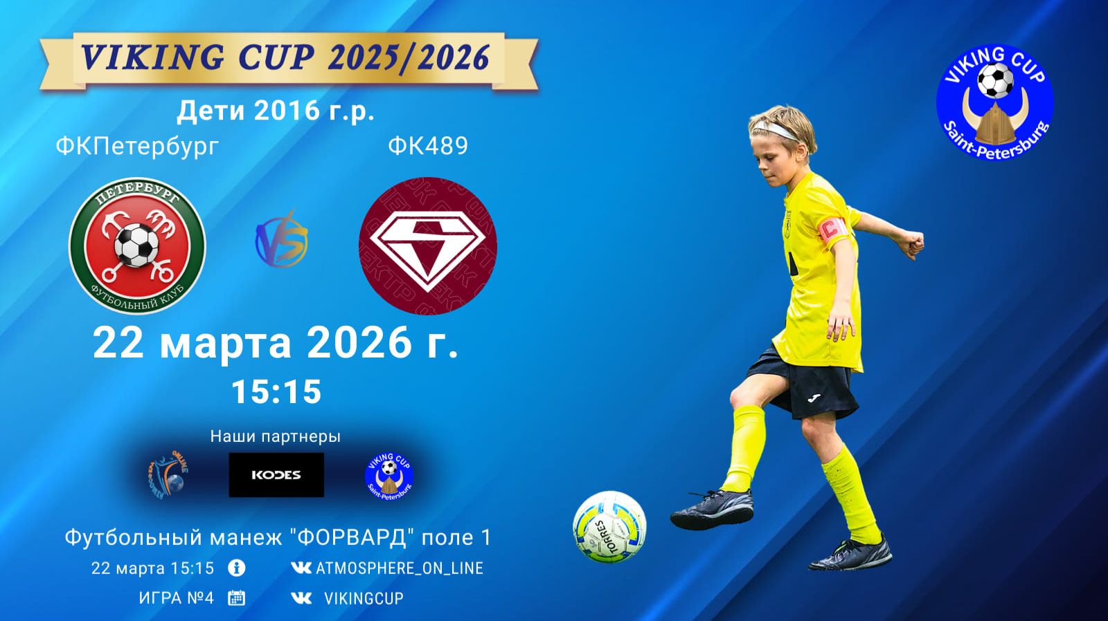 VIKING CUP среди команд 2016 г.р. (U10), Поле 1 22 марта 2026 САНКТ-ПЕТЕРБУРГ, ФЦ "Форвард" ФКПетербург-ФК489/VIKING CUP, Игра №4, 22-03-2026 15:15