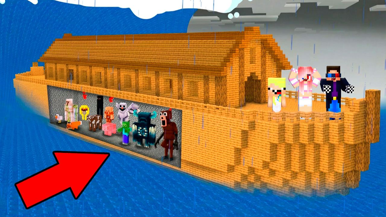 🌊🚢МЫ ПОСТРОИЛИ КОВЧЕГ ЧТОБЫ СПАСТИ ВСЕХ В МАЙНКРАФТ! ШЕДИ ЛЕСКА И НУБИК MINECRAFT