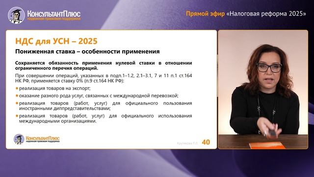 Налоговая реформа – 2025: пониженные ставки НДС при УСН Крутякова Татьяна Леонидовна