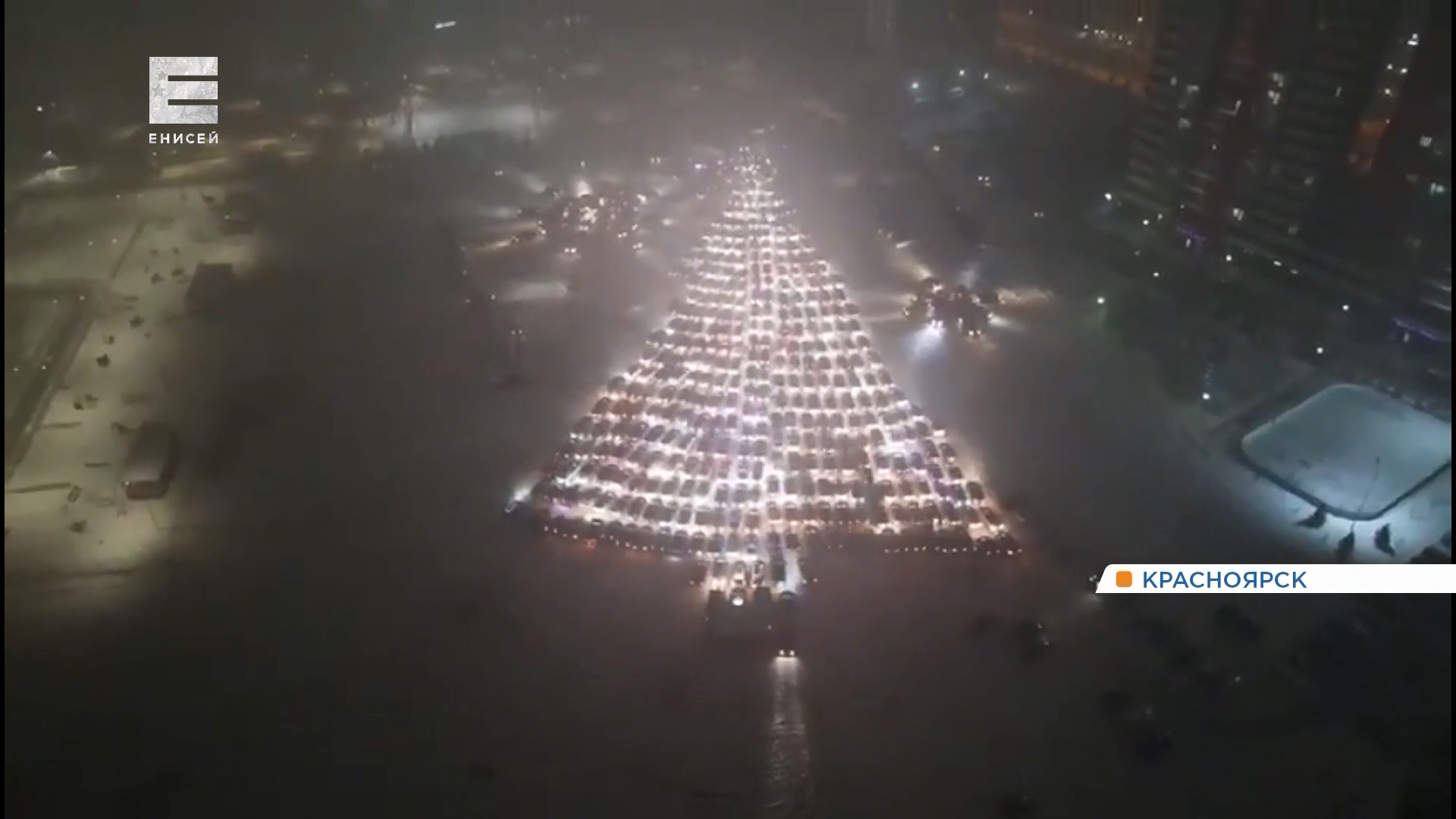 В Красноярске более 400 автомобилистов выстроили машины в виде ёлки