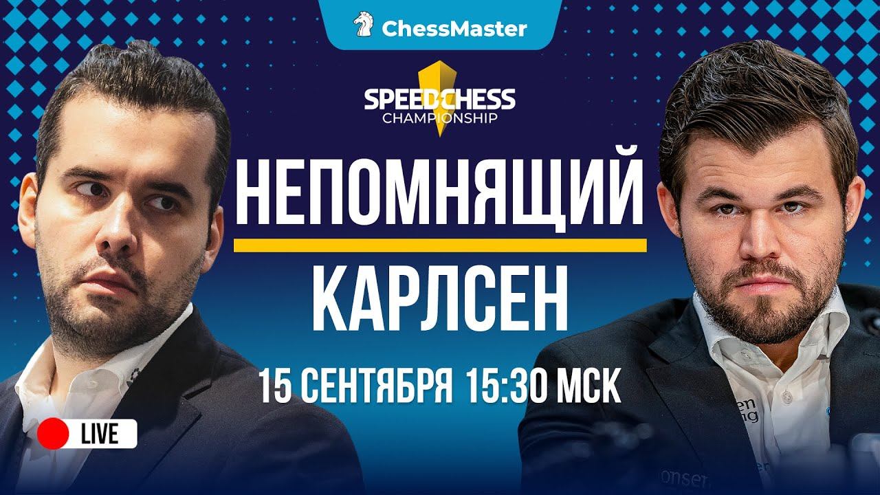 Донат - https://www.donationalerts.com/r/chessmaster https://school.chessmaestro.ru/winners — До 1 разряда с кайфом! Начинаем трансляцию Speed Chess Championship на сайте chess.com! Смотрим за матчем 1/4 Карлсен - Непомнящий! Комментирует: GM Фаррух Аммонатов Следите за прямыми трансляциями на канале ChessMaster! Оперативные новости в нашем телеграм: https://t.me/ChessMaestro Научись играть в шахматы быстро и в отличной компании. Годовой курс «Школа победителей» ждет всех, кто хочет рост рейтинга и 1-й разряд — https://school.chessmaestro.ru/winners Начало трансляций в 14:00 МСК Подписаться на канал https://goo.gl/nY2kmn ♕ - http://chessmaestro.ru/21mistakeyoutube книга 21 критическая ошибка в шахматах - получите Бесплатно Наши проекты - https://taplink.cc/chessmaster #ChessMaster #шахматы