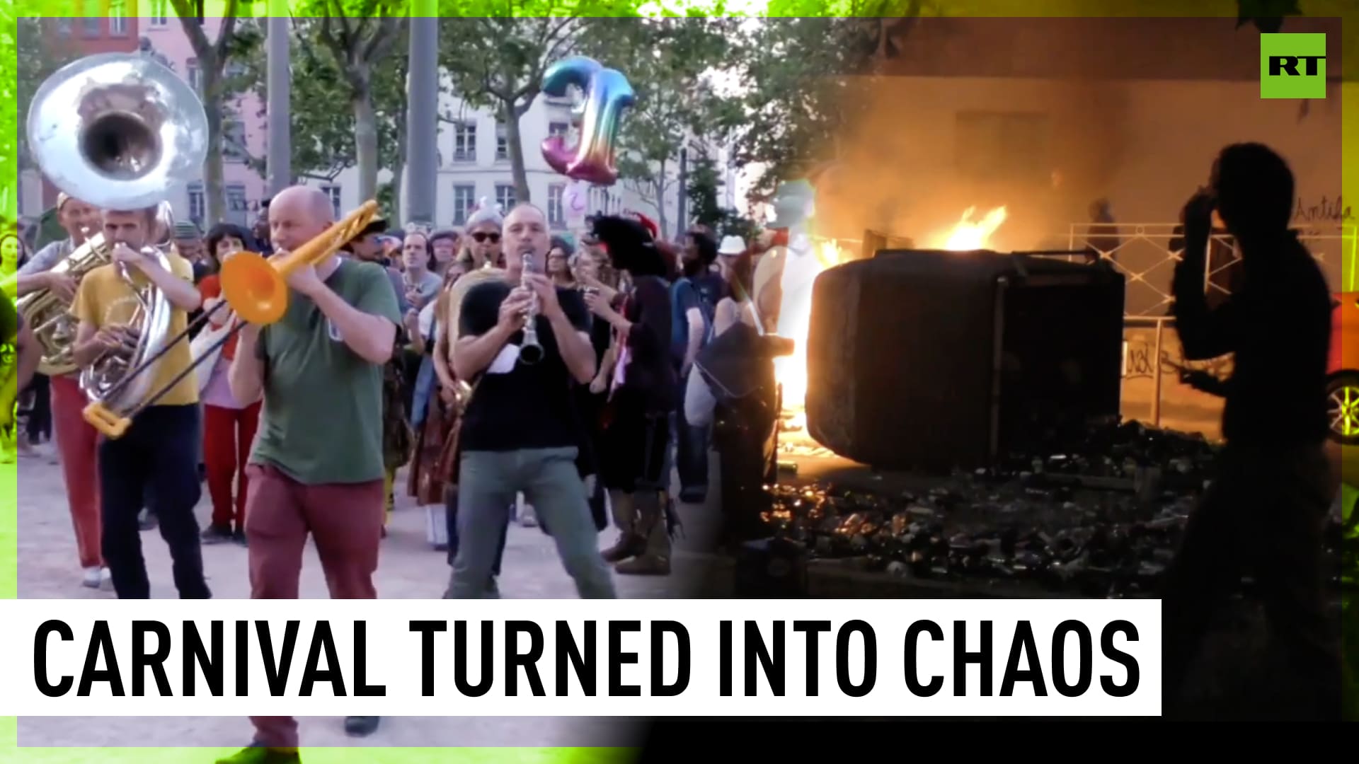 Celebrations turned to protests as scuffles erupted between police officers and locals in Lyon during the city’s ‘Grand Popular Carnival’. The festivities began with participants in costumes and marching bands playing music, but became chaotic when locals clashed with police officers, who deployed tear gas to disperse the protesters. The event was reportedly staged to protest against the current government and its recent measures. ------------------------------------------------------------------------------------------- Freedom over censorship, truth over narrative. Follow us on Facebook: https://www.facebook.com/RTnews Follow us on Telegram: https://t.me/rtnews Follow us on Twitter: https://twitter.com/RT_com
