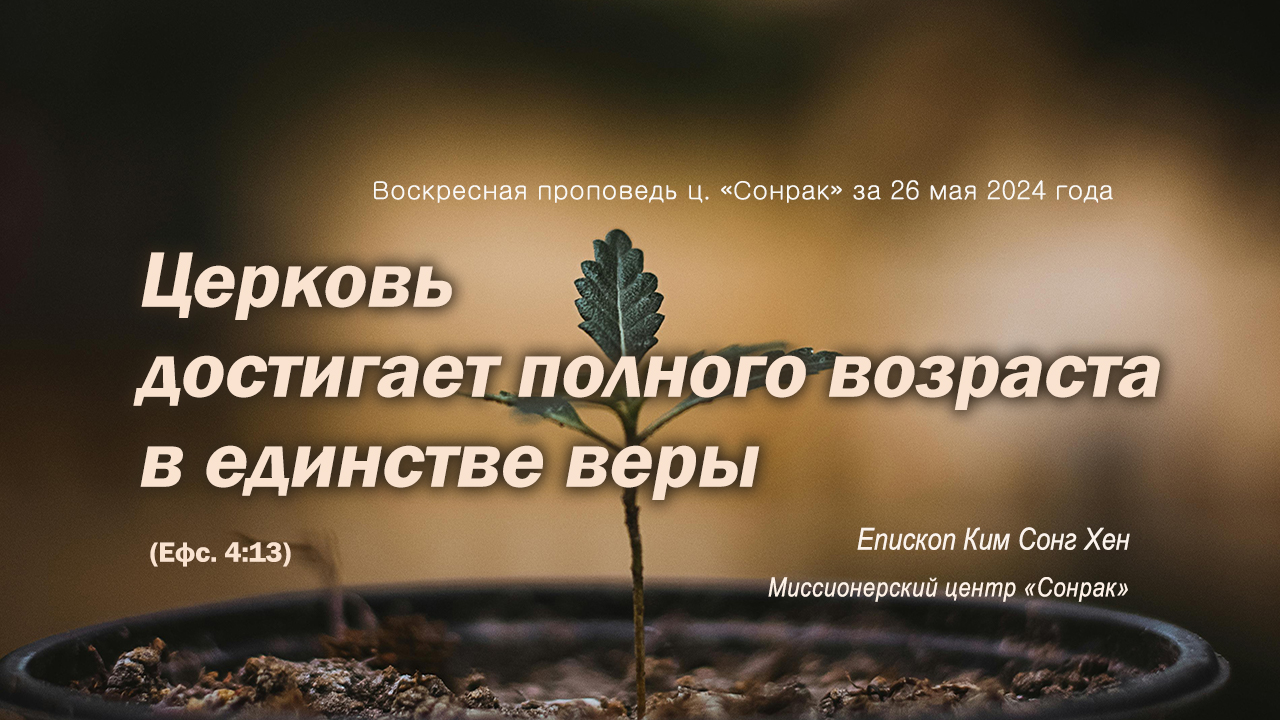 Бог даровал церкви пастора, чтобы он совершенствовал святых на дело служения, ради созидания тела Христова. Проходя такой процесс, какого состояния должна достигнуть церковь? Иными словами, каковы конкретные цели для созидания церкви, угодной Богу, к которым совместно должны стремиться пастор и святые? Об этом Павел говорит Ефесской церкви: «Доколе все придём в единство веры и познания Сына Божия, в мужа совершенного, в меру полного возраста Христова». Прежде всего, церковь должна достичь единства в «содержании веры». Ради этого необходимо сторониться каких-либо доктринальных утверждений или толкований, которые отклоняются от Евангелия, завещанного апостолами. Разделение Коринфянской церкви показывает, что игнорирование или искажение Евангелия, проповеданного всем людям через апостолов, приводит к расколу церкви. Поэтому и нам нужно смиренно принять настоятельный совет Павла Коринфянской церкви: «Умоляю вас, братия, именем Господа нашего Иисуса Христа, чтобы все вы говорили одно, и не было между вами разделений, но, чтобы вы соединены были в одном духе и в одних мыслях». Также, достичь единства в «познании Божьего Сына». Это не означает, что мы должны обладать только одинаковыми знаниями о спасении. В Библии слово «знать» относится к глубокому знанию, подобному отношениям между мужем и женой. Но когда говорится о единстве в познании Божьего Сына, имеется в виду более правильное, точное и полное знание о Нем, которое можно достичь только через верное изучение и полное повиновение Божьему слову. Фактически, глубокое общение с Господом неразделимо от глубокого общения со святыми. В Евангелии общение верующих является необходимым условием для общения с Господом. Затем, церковь должна достичь единства в «духовном росте». Духовный рост не означает накопление большого количества духовных знаний, и достигается силой Святого Духа, а не человеческими усилиями. Цель роста – достигать полного возраста Иисуса Христа. Доброта и милосердие Иисуса Христа, Его праведность, которую не может поколебать грех, Его искренность и верность, Его неизменность! Эти качества нам нужно приобрести. Конечно, мы не сможем полностью уподобиться Господу, но Его воля в том, чтобы мы не переставали стремиться к этому. «Господи, у меня ничего нет? До сих пор я не сделал ничего путного, я ничего не имею». Но Господь говорит: «У тебя есть небесное благословение, оно уже дано тебе! В тебе полнота Христа! Не сдавайся, иди вперед, пока оно не вырастет и не принесет плоды!» Господь с нами, Он не оставил нас. Хотя мы идем медленно, Господь каждый день помогает нам, знает, что мы не справимся сами. Поэтому, давайте изо всех сил подражать Господу! Давайте исполнять волю Бога, который Своей совершенной силой запланировал идеальный конец! Церковь достигает полного возраста в единстве веры (Ефс. 4:13) Воскресная проповедь ц. «Сонрак» за 26 мая 2024 года Епископ Ким Сонг Хен Миссионерский центр «Сонрак» вся проповедь здесь ↓↓↓↓↓↓↓↓↓↓↓↓↓ https://rutube.ru/video/d5af238adee3725abee1d1377b75c50f/ Музыка Треков: 2 Rainbow Oleksii Bezsalov Rainbow Burning Heart AudioCoffee Burning Heart Музыка ЭЛ.ПОЧТА: berearussia2015@gmail.com САЙТ: http://www.berearussia.org/ ЮТУБ: https://www.youtube.com/channel/UCHrXAWxq5MlDJoY87fMjknw РУТУБ: https://rutube.ru/channel/25256916/about/ ТЕЛЕГРАМ: https://t.me/BLGOMISLIE ОДНОКЛАССНИКИ: https://ok.ru/profile/145281546893 ЯНДЕКС ДЗЕН: https://zen.yandex.ru/id/62327455dfb5ea6bd6b08d31 В КОНТАКТЕ: https://vk.com/id713958967