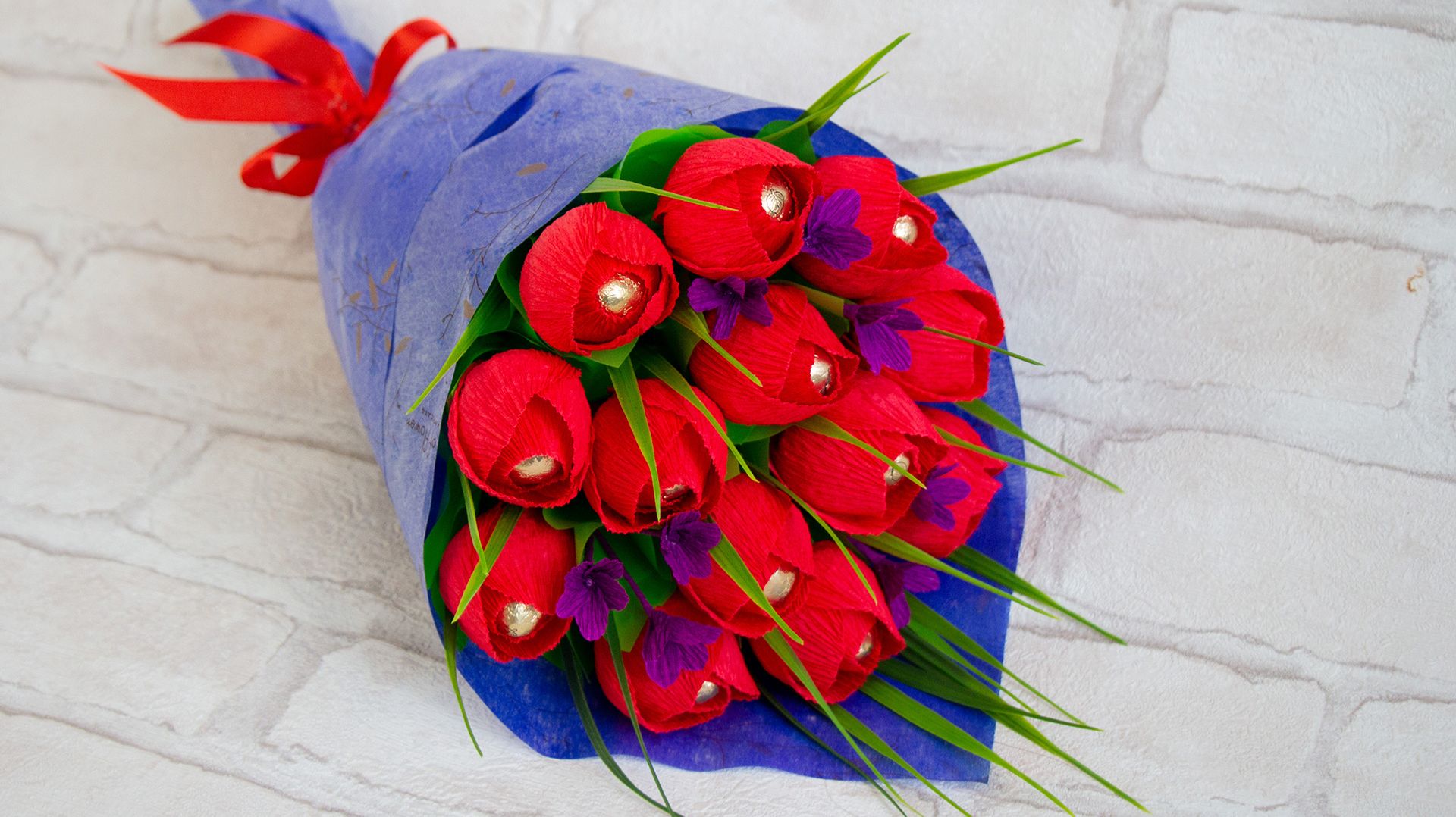 Весенний букет из конфет для учителя в школу ☆ Букет подарок на 8 марта своими руками ☆ Diy