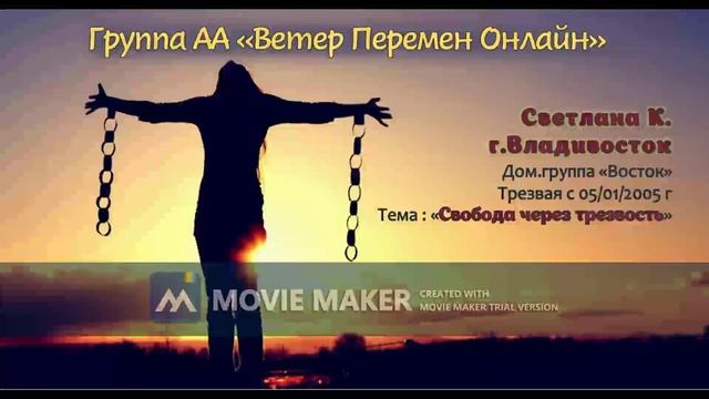Светлана К., трезвая с 05.01.2005 г., г. Владивосток, дом.группа "Восток" Тема: " Свобода через трезвость"