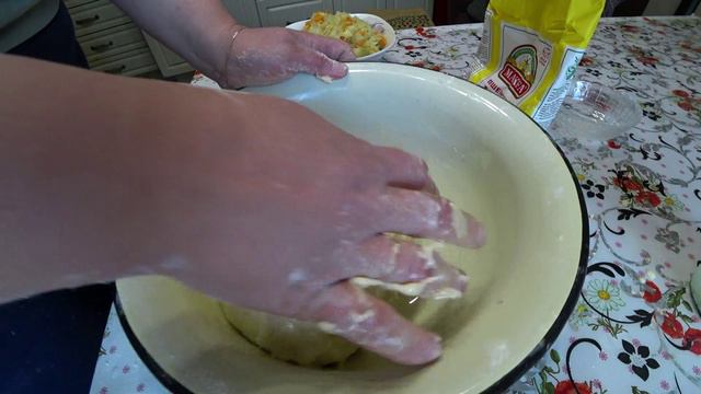 Рецепт: - 0,5 л кефира - 3 яйца - 1 ч. л. соли - 3-4 ст. л. сахара - 800 г муки - 1 пакетик разрыхлителя - 3 ст. л. масла.