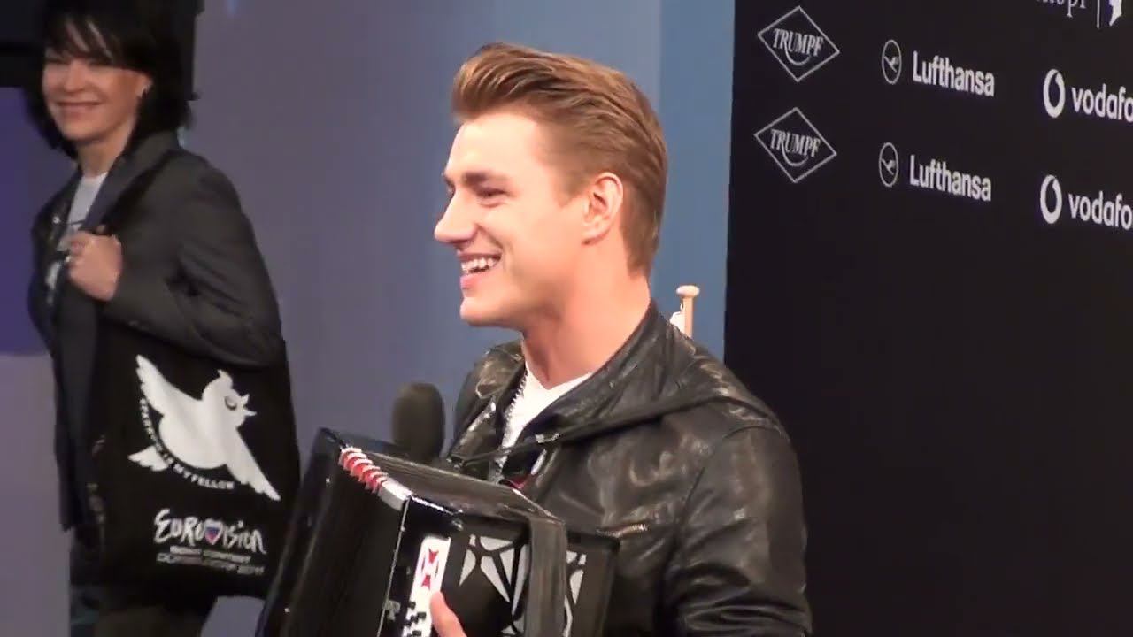 Алексей Воробьев "зажег" с "Тульской гармонью" на пресс конференции Пресс конференция российской делегации на конкурсе Eurovision в Дюссельдорфе.