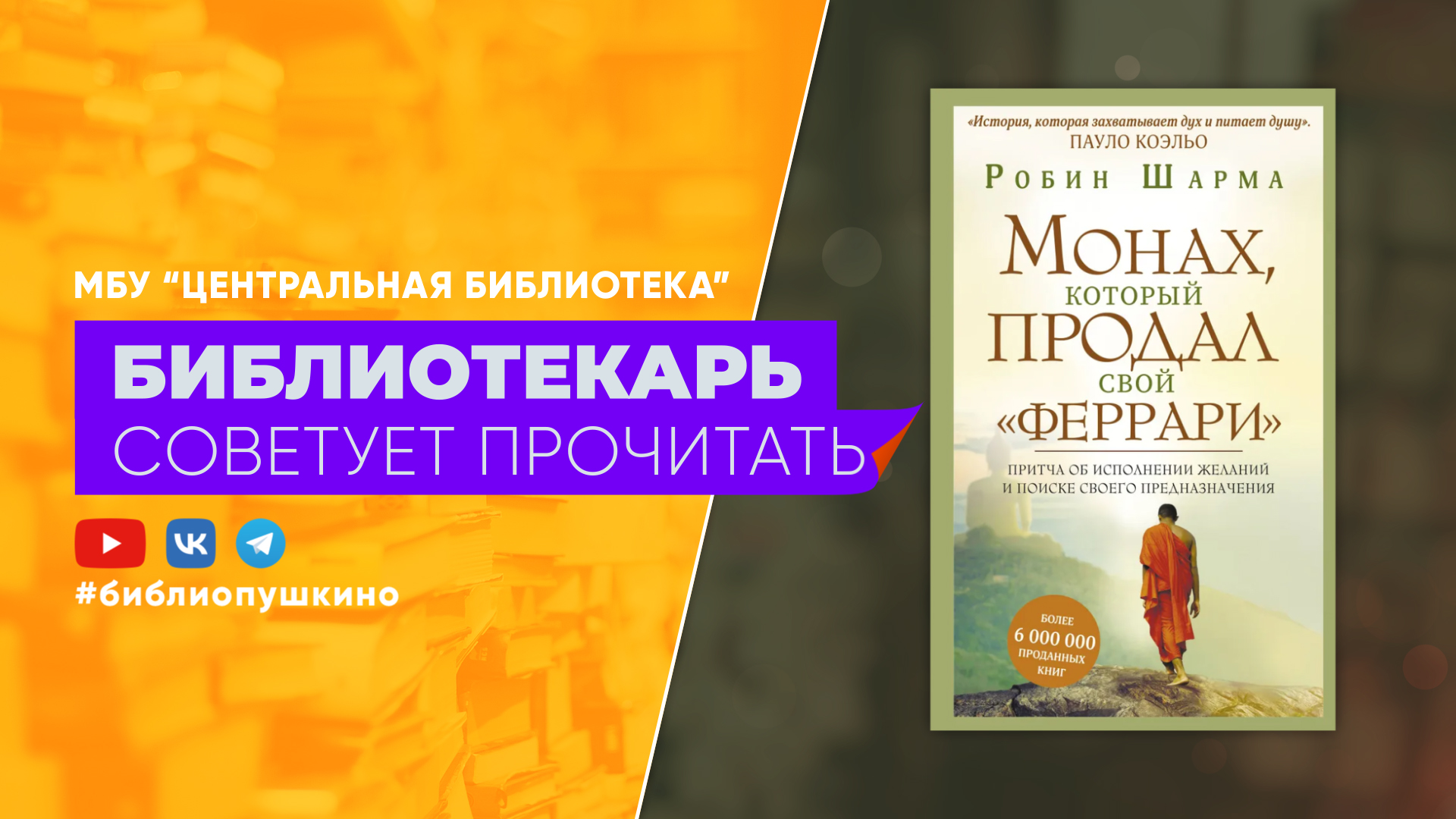 БИБЛИОТЕКАРЬ СОВЕТУЕТ ПРОЧИТАТЬ: Шарма Робин "Монах, который продал свой "феррари"