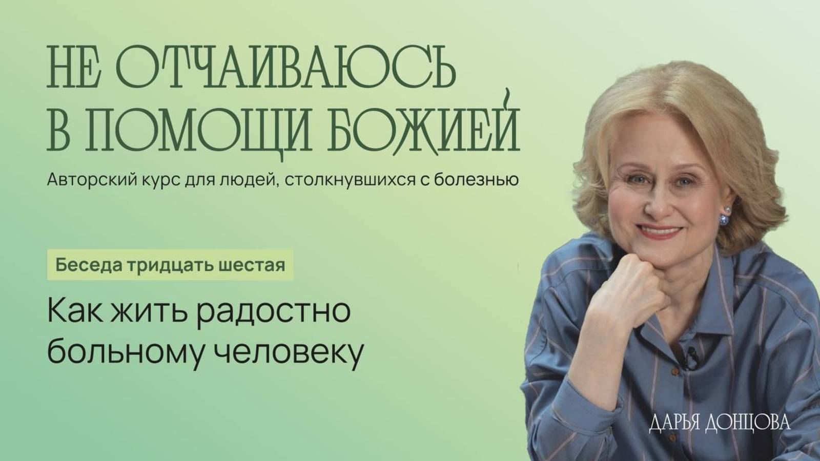 В авторском курсе писательница Дарья Донцова делится опытом преодоления болезни, советами по здоровому образу жизни, рассуждает о взаимосвязи духовного и телесного. Лекция будет интересна широкой аудитории, поскольку Дарья Донцова — яркий пример человека с неунывающим характером, строгой самодисциплиной и безграничным доверием Промыслу Божию. На встречах в рамках курса «Не отчаиваюсь в помощи Божией» слушатели общаются с автором, делятся своими проблемами и просят совета в трудных ситуациях, связанных с лечением онкозаболеваний. Также обсуждаются методы психологической поддержки, коммуникация с близкими и коллегами. Если вы или ваши близкие столкнулись с онкологией, курс «Не отчаиваюсь в помощи Божией» поможет адаптироваться и с оптимизмом смотреть в будущее. Обычно встречи проходят по вторникам в актовом зале Сретенской духовной академии. Следите за анонсами нашем сайте: https://monastery.ru Духовно-просветительский центр имени священномученика Илариона (Троицкого) в социальных сетях: ВКонтакте: https://vk.com/ilarioncentr Telegram: https://t.me/ilarioncentr * Помочь монастырю: https://monastery.ru/bogosluzhenie/pomoshch-monastyryu/?s=#donation