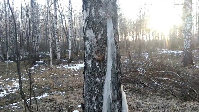 Гуляя по лесу, увидел вдали дерево с какими то белыми наростами. Когда подошел ближе, то увидел, что эти наросты-сок. Это березовый сок, который постепенно намерзал, вытекая из дерева.
