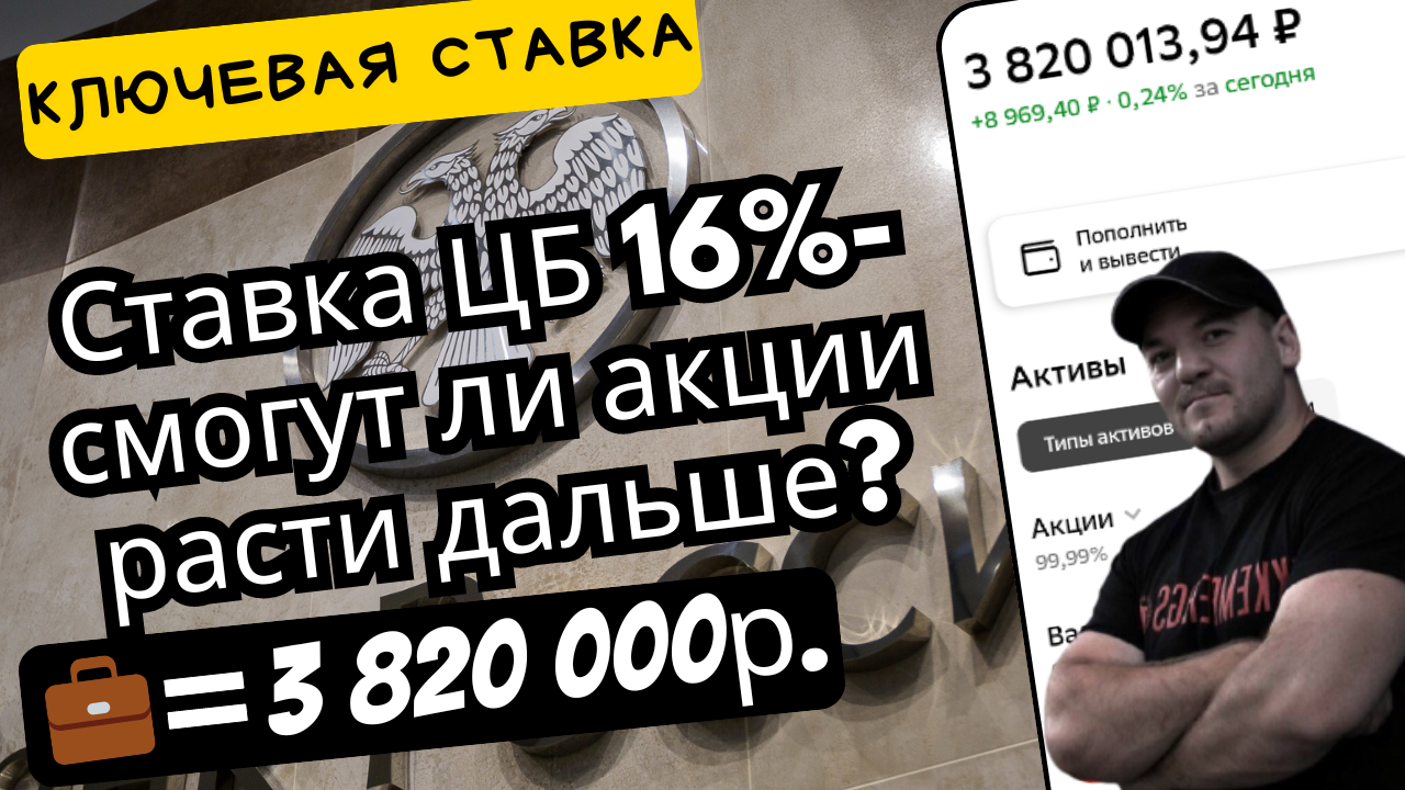 Ключевая ставка не снижается и держится высоко на уровне 16%! Это хорошо или плохо для рынка акций?