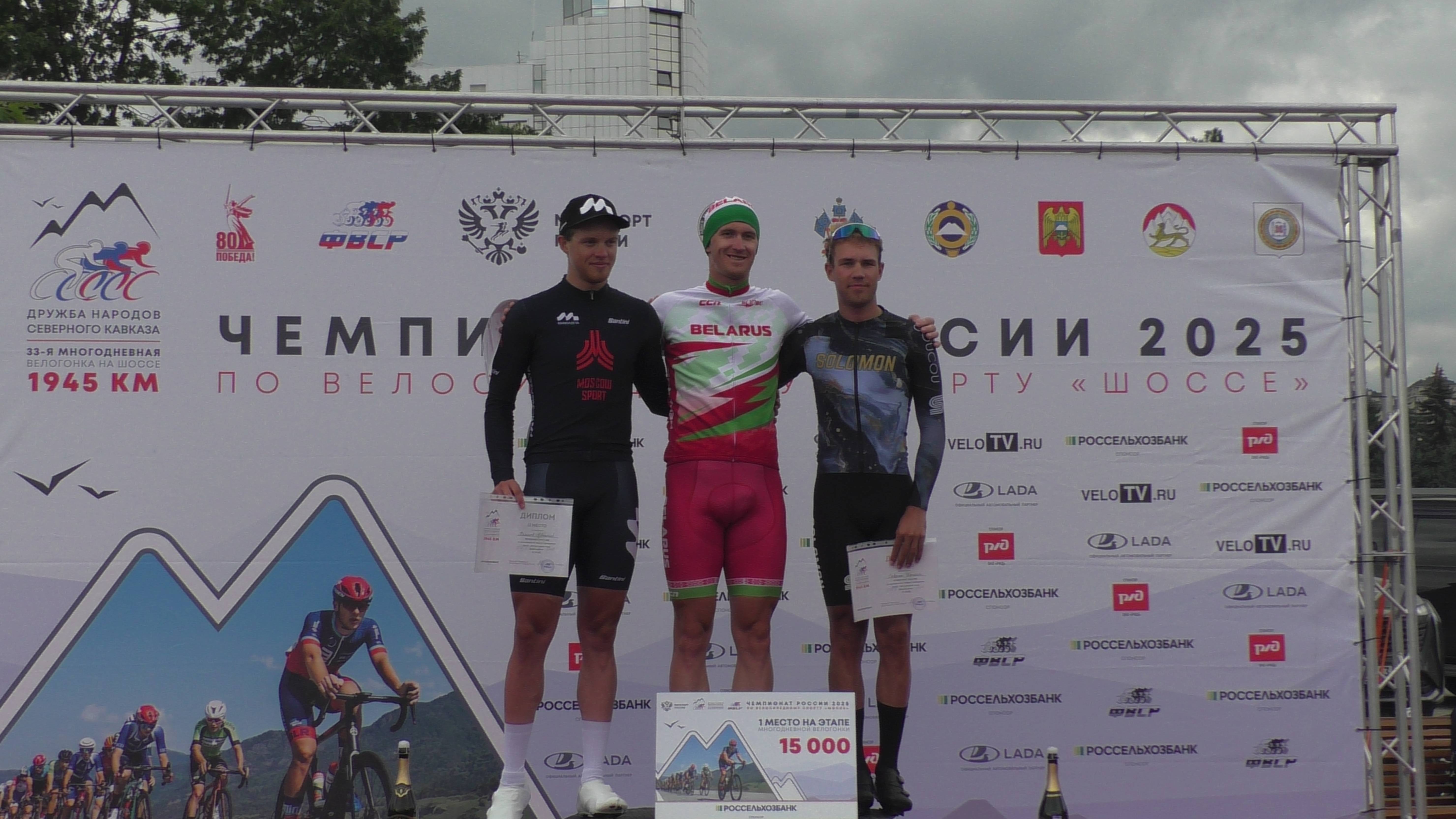 Награждение победителей в чемпионате России по велоспорту "Трасса" в Нальчике. 2025