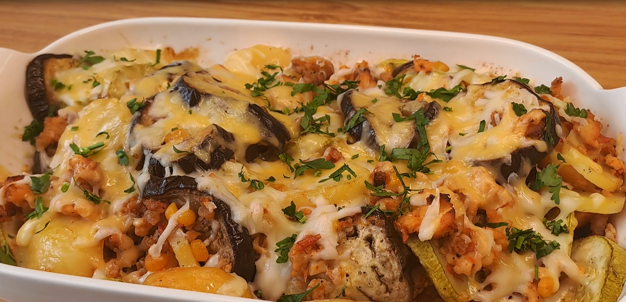 Подписывайся на канал и делись видео с друзьями. Также у меня на канале еще очень много вкусных рецептов, и еще больше рецептов ждет вас впереди. Вконтакте - https://vk.com/vkusnierecipe Одноклассники - https://ok.ru/group/70000000861442 Дзен - https://dzen.ru/vkusnierecipes https://dzen.ru/isrecipe Весь музыкальный контент, использующийся в видео на данном канале размещён на основании лицензии Creative Commons 4.0 вариант лицензии CC0 (https://creativecommons.org/licenses/by/4.0/) с медиатеки, где не требуется указания авторства. Когда у вас есть 2 картофелины, 1 кабачок, 1 баклажан, приготовьте это простое картофельное блюдо. Быстрый и простой рецепт. Такого вкусного картофеля вы еще не ели! Очень простой и вкусный рецепт. Рецепт основан на картофеле, фарша, кабачка и баклажана. Обязательно приготовьте картошку этим простым способом. Вкуснее, чем картошка фри! Это идеальное блюдо для любителей простых и вкусных овощных рецептов. Готовьте с удовольствием! Ингредиенты: 200 граммов свиного фарша. 200 граммов куриного фарша. 1 луковица. 1 зубчик чеснока. 2 помидора. 5 граммов паприки. соль, черный молотый перец добавьте по вкусу. растительное масло для смазывания. 70 граммов консервированной кукурузы. 300 граммов картофеля. 1 кабачок. 1 баклажан. 70 граммов сыра пармезан.