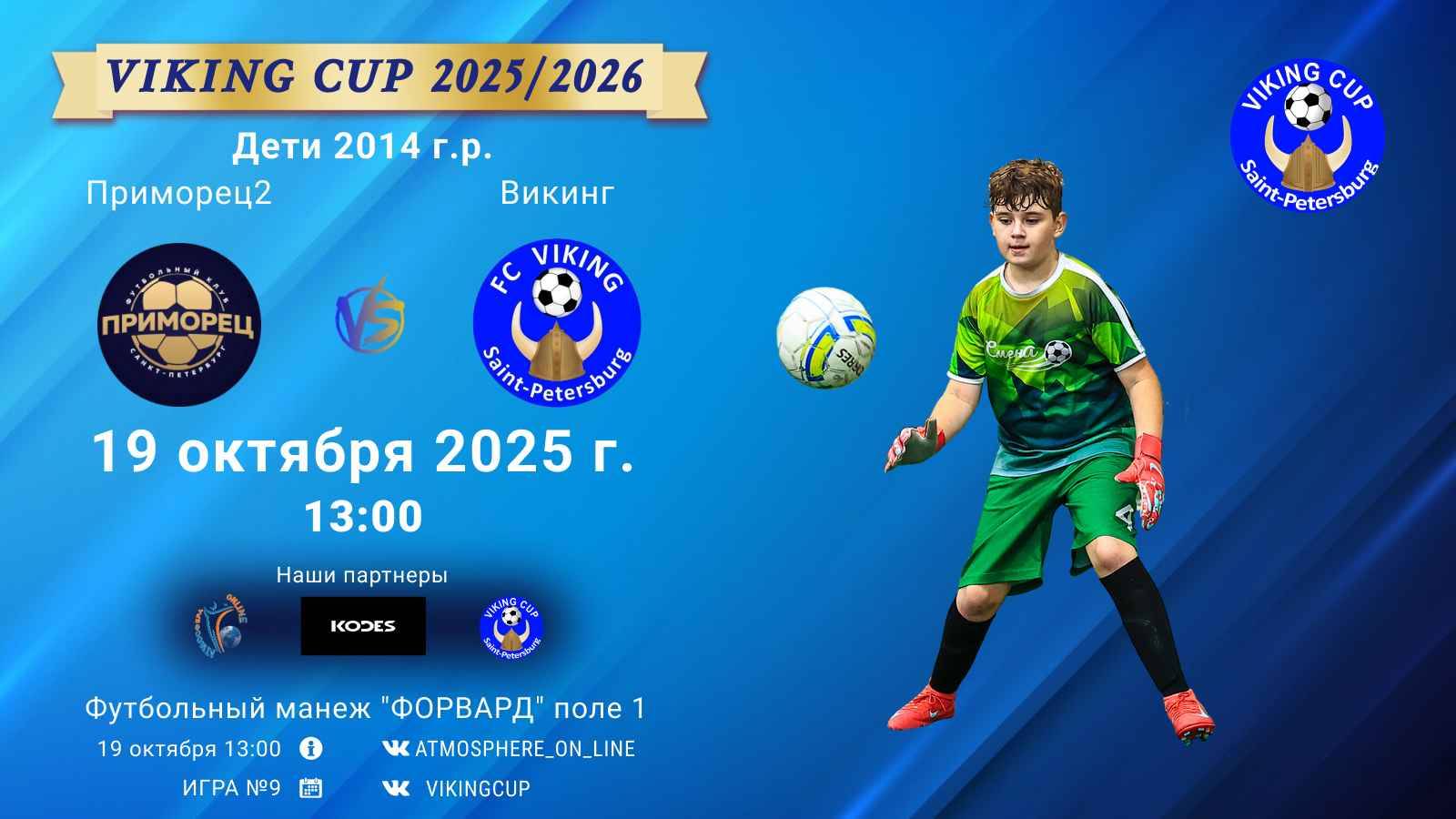 VIKING CUP среди команд 2014 г.р. (U11), Поле 1 19 октября 2025 САНКТ-ПЕТЕРБУРГ, ФЦ "Форвард" ФК "Приморец2" - ФК "Викинг"/VIKING CUP, Игра №9, 19-10-2025 13:00
