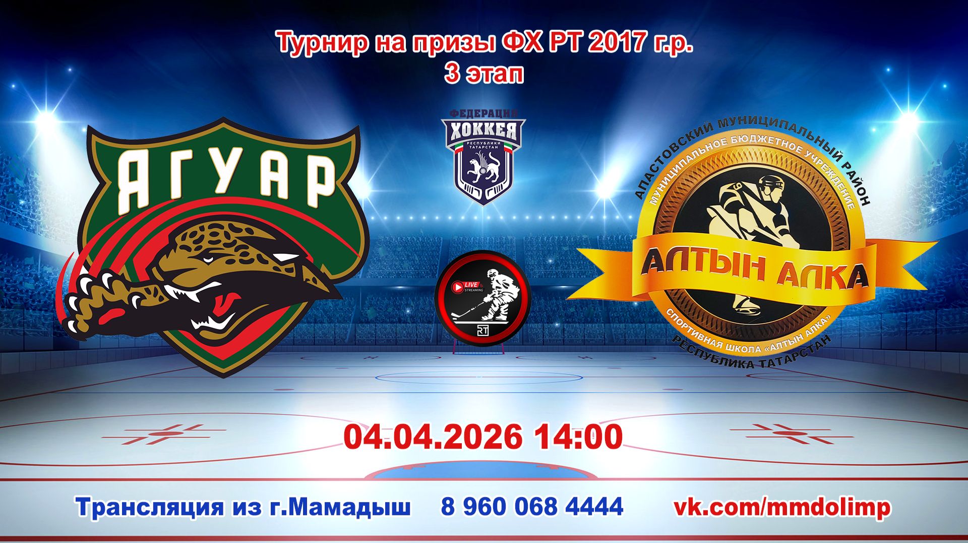 04.04.2026 ЯГУАР (Кукмор) - АЛТЫН АЛКА (Апастово) Турнир на призы ФХ РТ 2017 г.р. LIVE 14:00