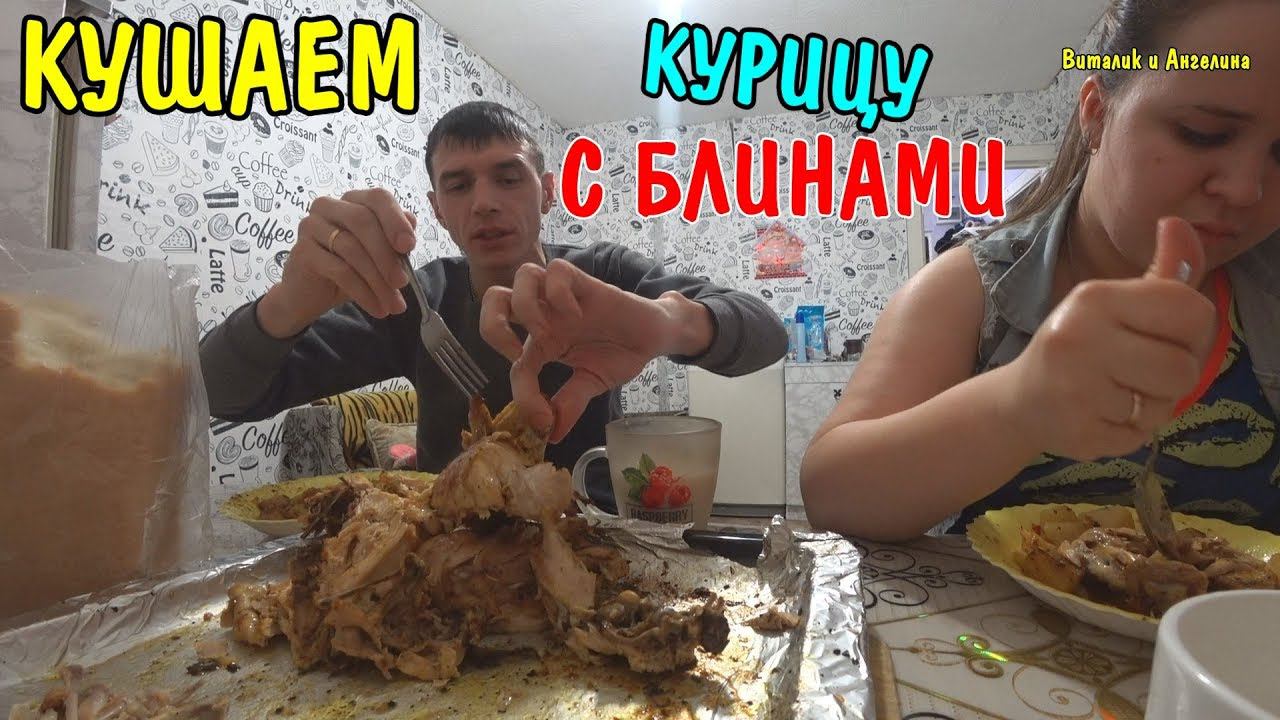 КУШАЕМ НА КАМЕРУ КУРИЦУ В ДУХОВКЕ + БЛИНЧИКИ / МУКБАНГ / ВИТАЛИК И АНГЕЛИНА