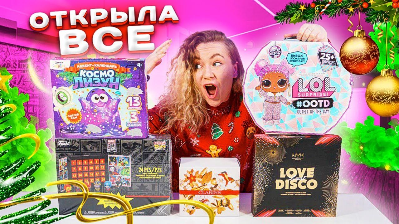 ПОТРАТИЛА 20К на АДВЕНТ-Календари ! ЧТО Внутри LOL, NYX, Funko, Clarins и Слайм Подарке ?!