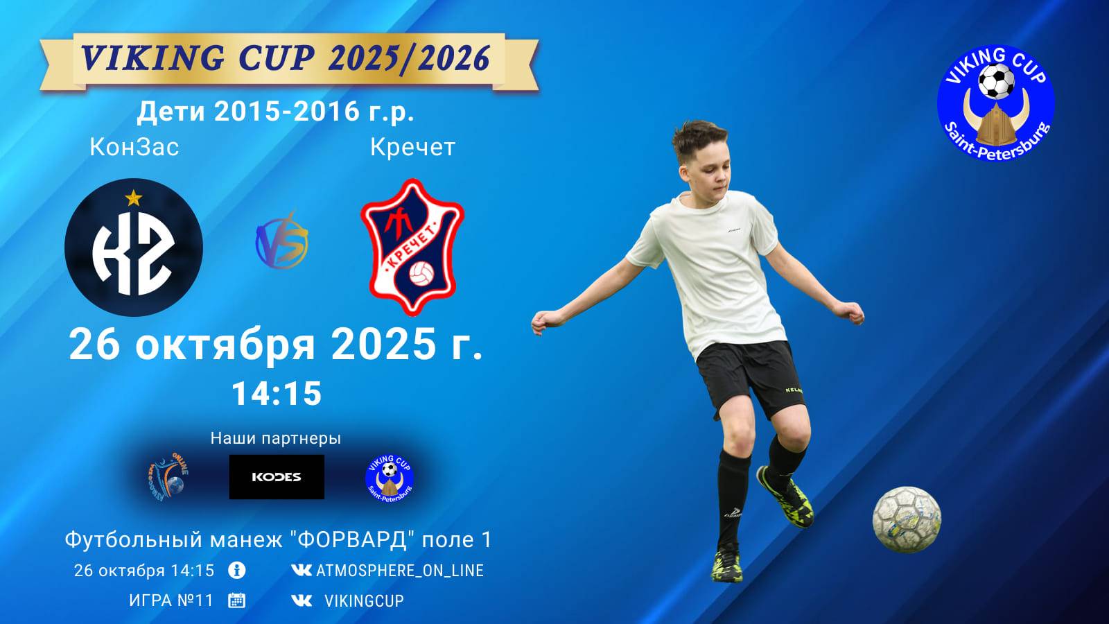 VIKING CUP среди команд 2016 г.р. (U9), Поле 1 26 октября 2025 САНКТ-ПЕТЕРБУРГ, ФЦ "Форвард" ФК "КонЗас" - ФК "Кречет"/VIKING CUP, Игра №11, 26-10-2025 14:15