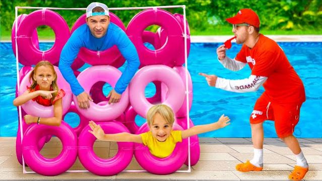 Крис учится соблюдать правила, играя в бассейне.