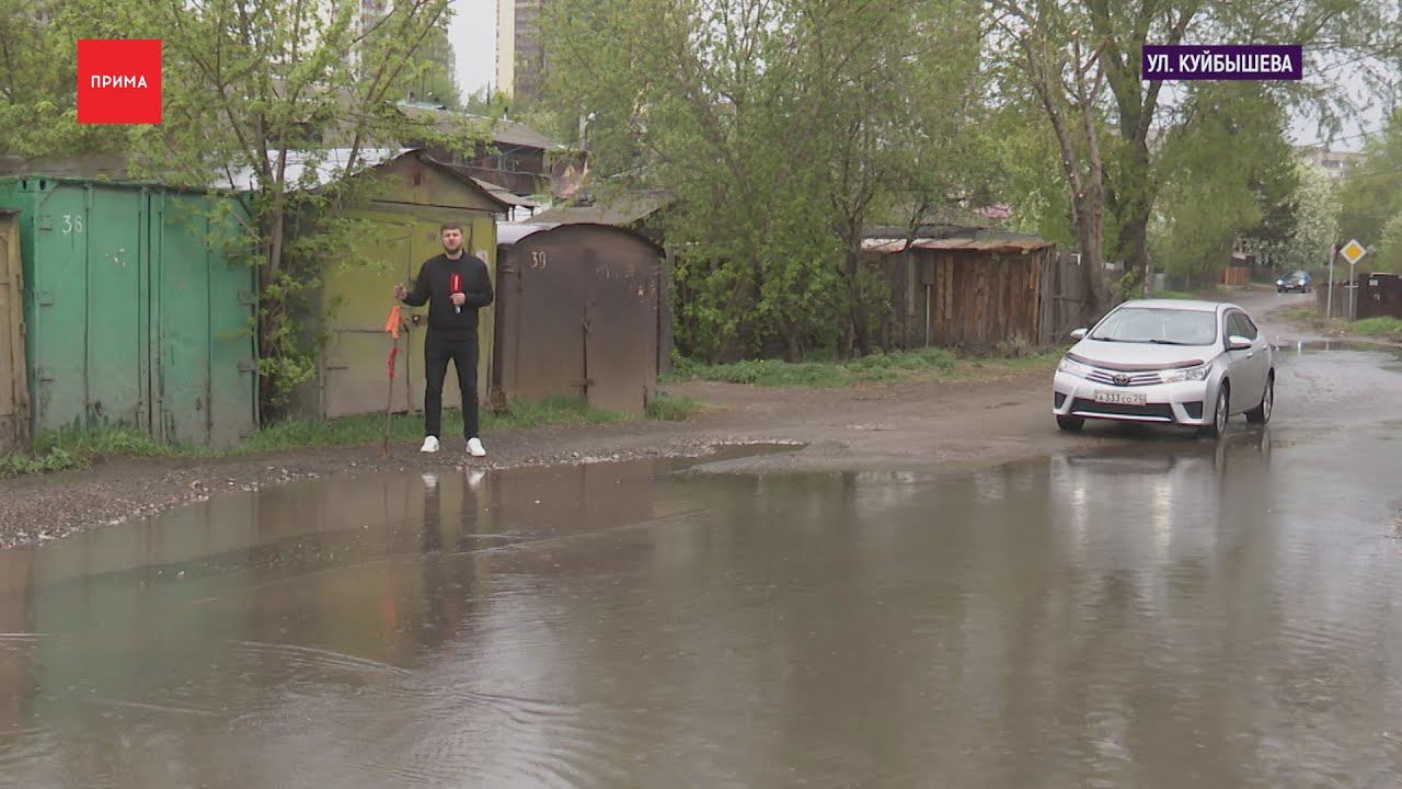 Асфальт размыло на Куйбышева из-за коммунальной аварии