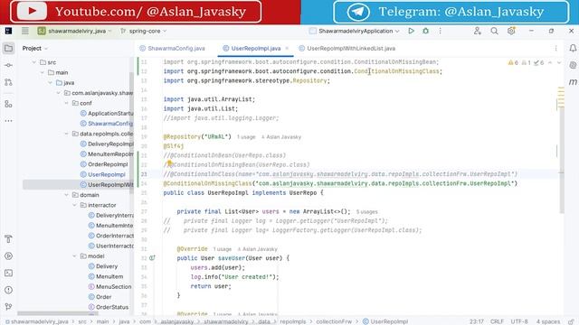 Задонатить: https://yoomoney.ru/to/4100110584940159 Курс по Spring framework на языках Java/Kotlin на примере разработки клиент-серверного приложения для заказа шаурмы) Исходный код ко всем урокам по модулю "Spring core" https://github.com/AslanJavasky/shawarmadelivery_java/tree/spring-core https://github.com/AslanJavasky/shawarmadelivery_kotlin/tree/spring-core Задонатить преподавателю: Карта Сбер: 5469 6000 2144 3601 (Аслан) Карта Т-Банк: 2200 7001 1633 9259 (Аслан) Карта Альфа-Банк: 2200 1523 1074 7517 (Аслан) ЮMoney(ЯндексДеньги): 4100110584940159 для донатов из-за рубежа: https://www.donationalerts.com/r/aslan_javasky Спасибо :) Без VPN: https://vkvideo.ru/playlist/-229755761_3