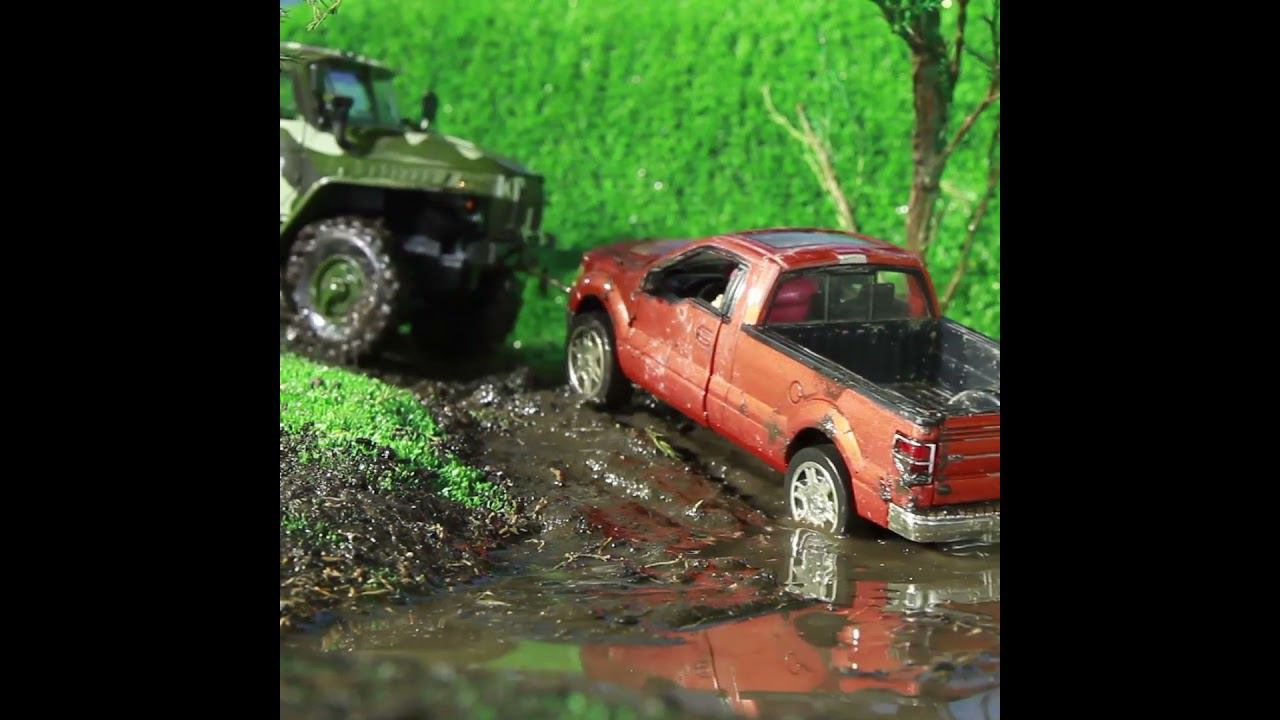 Машина застряла в грязи, грузовик её вытаскивает. Манкиту