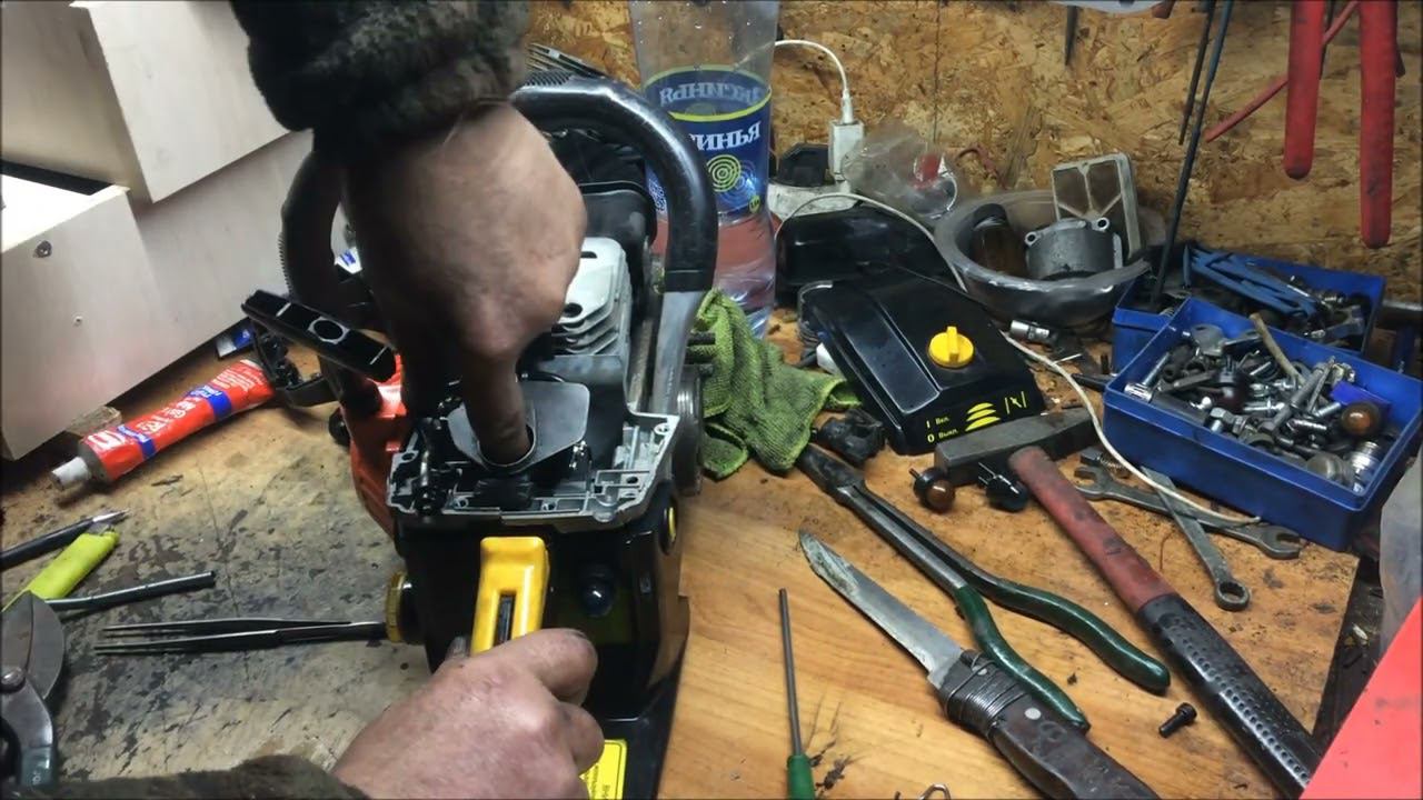 Huter BS-45.Когда нет настроения к одному прибавить два то неси бензопилу в мастерскую)