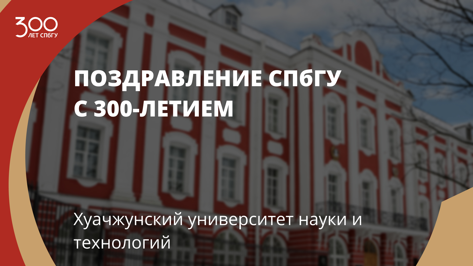 Поздравление СПбГУ с 300-летием от Хуачжунского университета науки и технологий