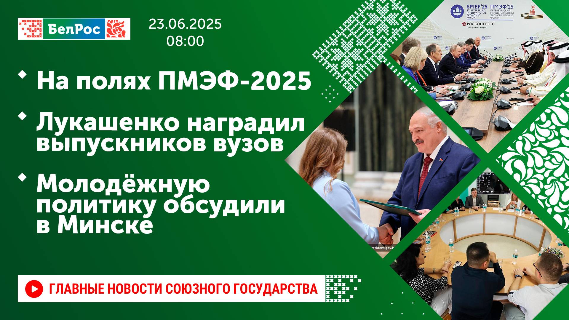 На полях ПМЭФ-2025 / Лукашенко наградил выпускников вузов / Молодёжную политику обсудили в Минске