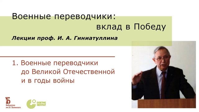 16 июн. 2020 г. Немецкий читальный зал приглашает на лекторий профессора Игоря Ахмедовича Гиниатуллина «Военные переводчики. Вклад в победу». Часть 1: Военные переводчики до Великой отечественной и в годы войны. Свердловская областная универсальная научная библиотека им. Белинского http://book.uraic.ru/ сайт https://vk.com/club6745014 VK