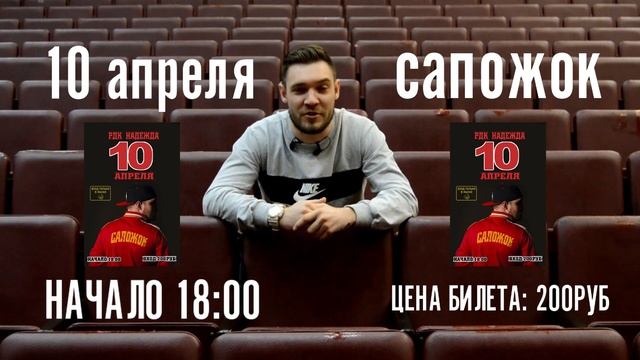 10 АПРЕЛЯ САПОЖОК РДК НАДЕЖДА БОЛЬШОЙ КОНЦЕРТ BLLACK-SANTA И КОМПАНИЯ НАЧАЛО 18:00 ЦЕНА БИЛЕТА: 200 РУБ