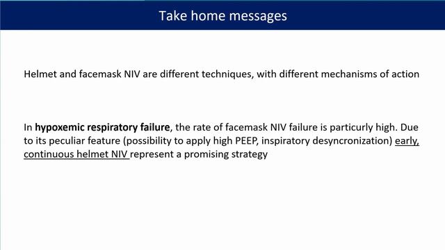 Different options Lise Piquilloud High flow oxygen in hypercapnic disorders Laurent Brochard CPAP Alexandre Demoule Facemask vs helmet NIV Domenico L Grieco After blunt chest trauma Xavier Chapalain Predictors of failure Ling Liu NIV after extubation in obese patients Samir Jaber Routine rescue NIV post-extubation Domenico L Grieco