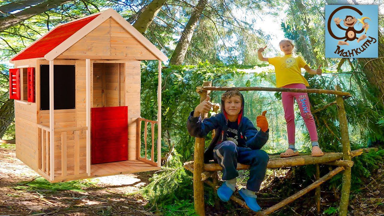 Привет. В этом новом весёлом видео Диана и Даня строят домик в лесу. За 24 часа ребята с канала Манкиту построят детский домик из дерева в лесу.