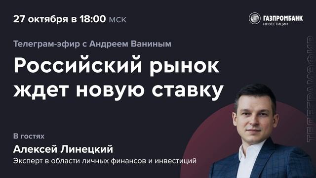 Запись эфира от 27.10.2022 В пятницу Банк России проведет очередное заседание, где примет решение по ключевой ставке. Большинство аналитиков считают, что регулятор впервые с марта оставит ключевую ставку без изменений на уровне 7,5%. Вместе с Алексеем Линецким, экспертом в области личных финансов и инвестиций, обсудили, чего ждать инвесторам в преддверии заседания Банка России, как решение регулятора повлияет на фондовые рынки и какие акции и облигации сейчас выглядят наиболее перспективно. Слушайте в записи. #инвестирование #инвестиции Мы в Вк: https://vk.com/gazprombank_investments Мы в Telegram: https://t.me/gpb_investments Наш блог: https://gazprombank.investments/blog/