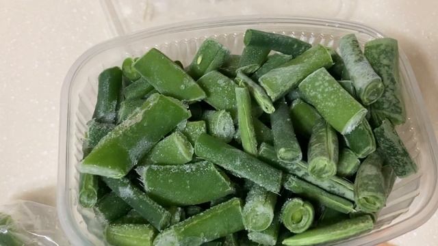 Замороженная фасоль и перец для овощного рагу.
