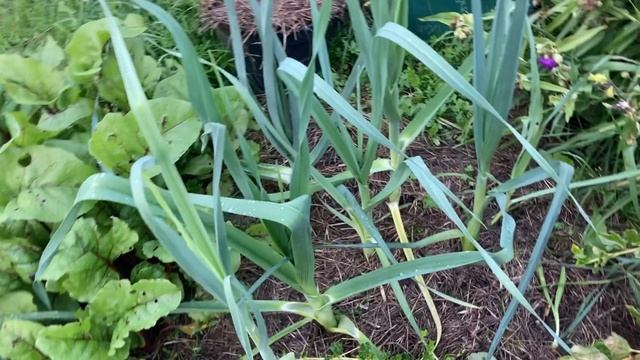 Показываю куст крыжовника, у которого вкусные большие ягоды. Он достаточно компактный, низкорослый и очень урожайный. Лук порей выращенный из чернушки. Двинулся в рост лишь после того, как я замульчировала грядку. Фацелия растёт по клубничной грядке, некоторые кусты клубники я опять подстригла.