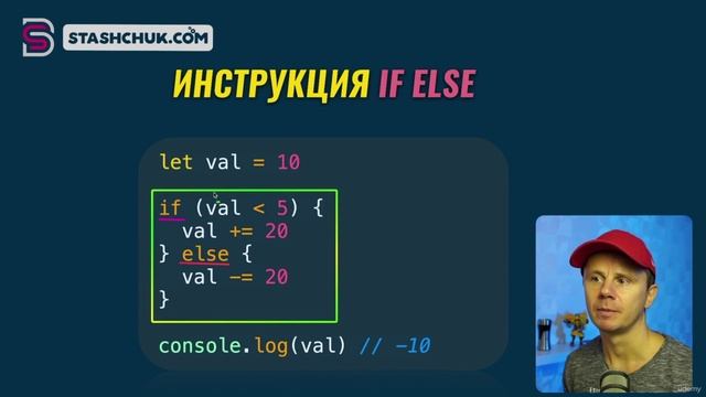 Существует четыре условные инструкции: if, if...else, switch, тернарный оператор Вы мотивируете выкладывать больше полезного контента, когда поддерживаете канал: https://boosty.to/worcel/donate Поддержите канал, сделайте заказ по ссылке: Викиум – это онлайн-платформа для тренировки памяти, внимания и мышления - https://is.gd/OguZll GeekBrains — это образовательная экосистема. В ней любой человек с нуля может освоить профессию в области программирования, маркетинга, управления и дизайна и гарантированно найти работу - https://is.gd/RPBEDS Skypro — онлайн-университет рентабельного образования. Учим IT-профессиям с нуля и гарантируем новую работу - https://is.gd/0GXfNR Знанио — ведущий портал дополнительного образования для взрослых и детей - https://is.gd/E5Ess3 Zaochnik — крупнейший образовательный сервис для студентов, работает с 2000 года, от контрольных и рефератов до диссертаций - https://is.gd/jk9930 Напишем - напишут всё что нужно - https://is.gd/Ebj6ov Алгоритмика — международная школа программирования и математики для детей от 6 до 17 лет - https://is.gd/NNmiHL Тетрика — это команда опытных репетиторов, со специалистами по любому предмету с 1 по 11 класс, английский для взрослых и удобная интерактивная платформа для онлайн-уроков - https://is.gd/brw69z #java #javascript