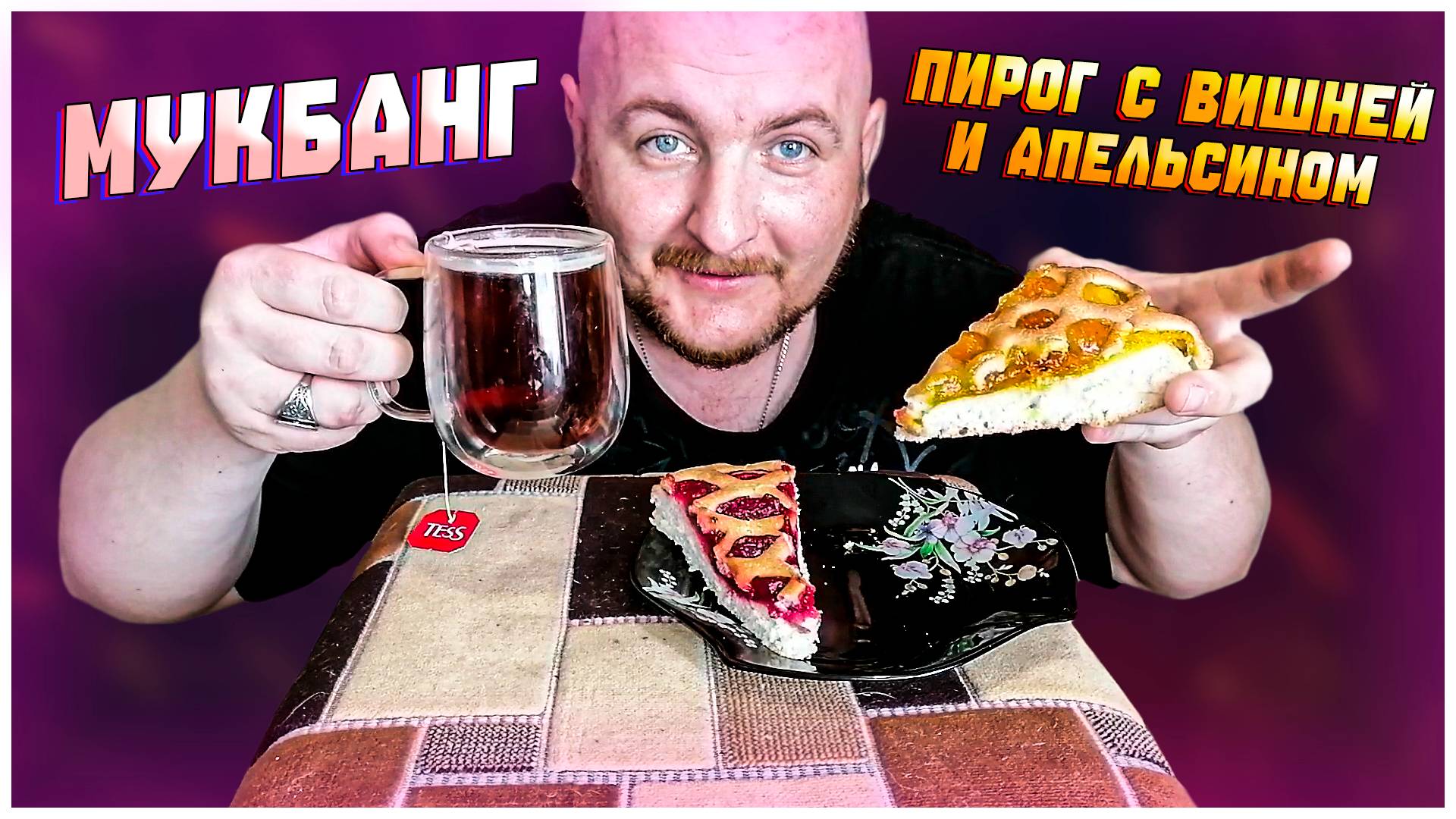 МУКБАНГ ПИРОГ С ВИШНЕЙ И АПЕЛЬСИНОМ/ВКУСНЕЙШИЙ ПИРОГ