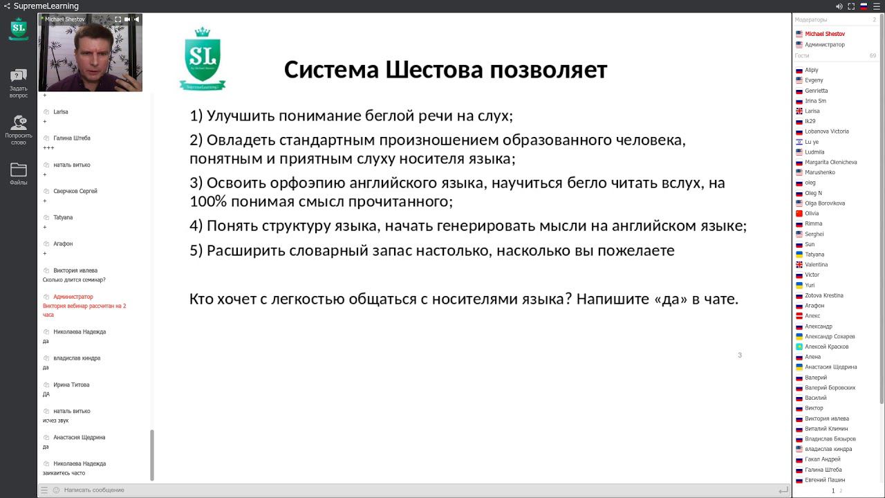 По версии преподавателей, разговорный английский нужно учить ЧЕТЫРЕ ГОДА! И результат не гарантирован! Мошенники совсем обнаглели! Цитируем преподавателя, обозленного на деятельность Михаила Шестова: "я замечу, что изучение языка недаром делится на уровни: от А1 до С2. и каждый уровень имеет описание с набором компетенций (не дураки писали). Понимание и владение разговорным языком - это уровень В2, а В2 - это года 4 обучения". При правильном подходе, требуется не 4 тысячи, а от 140 (!) астрономических часов Курсы on sale можно приобрести - ДО 0:01 8 сентября (по московскому времени) - здесь: http://shestovsystems.com/september