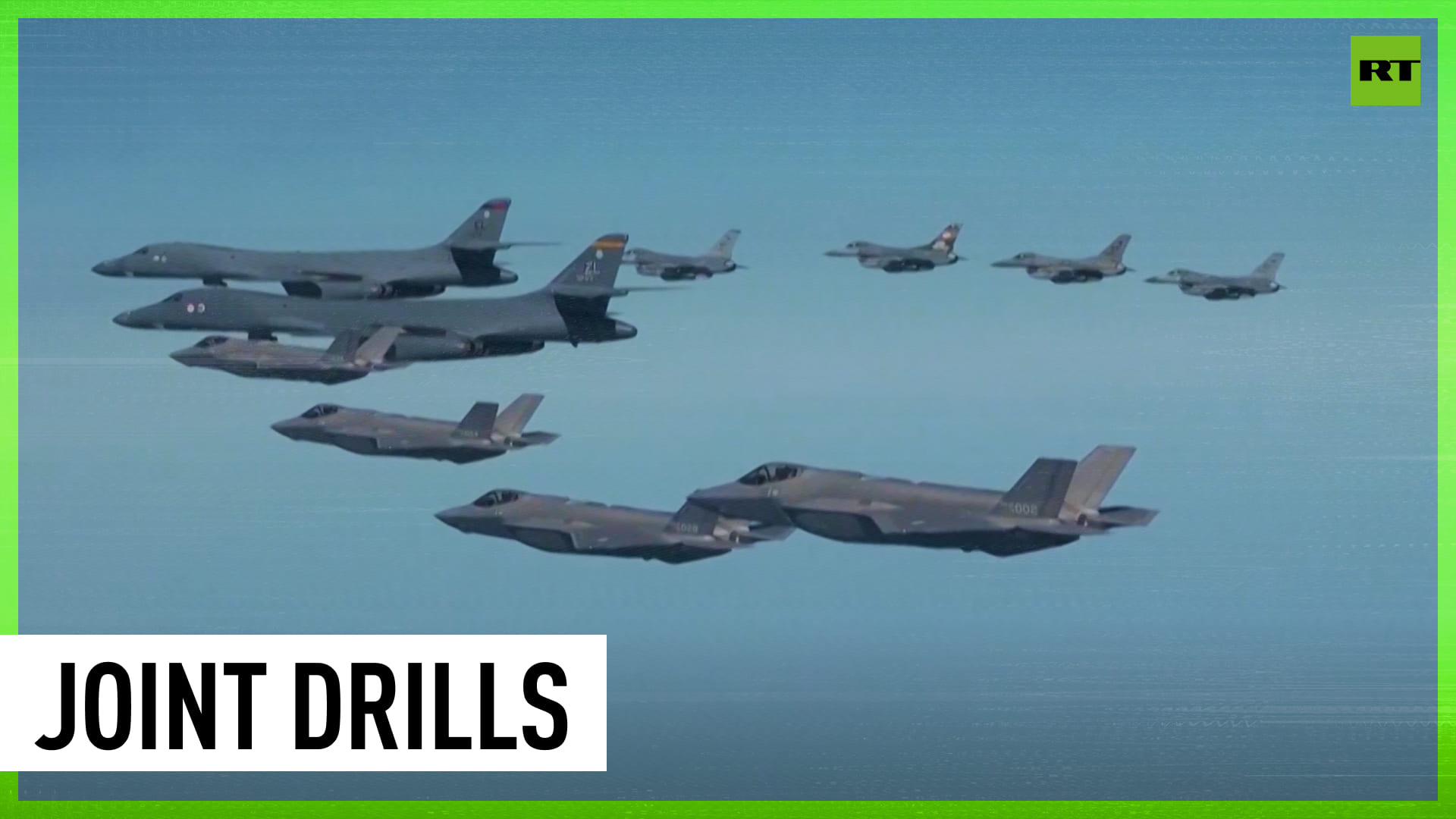After North Korea launched its missile test, South Korea and the US held joint air drills involving F-35A fighters of the South Korean Air Force and B-1B bombers and F-16 fighters of the US Air Force -------------------------------------------------------------------------------------------------- Freedom over censorship, truth over narrative. Follow us on Facebook: https://www.facebook.com/RTnews Follow us on Telegram: t.me/rtnews Follow us on Twitter: https://twitter.com/RT_com