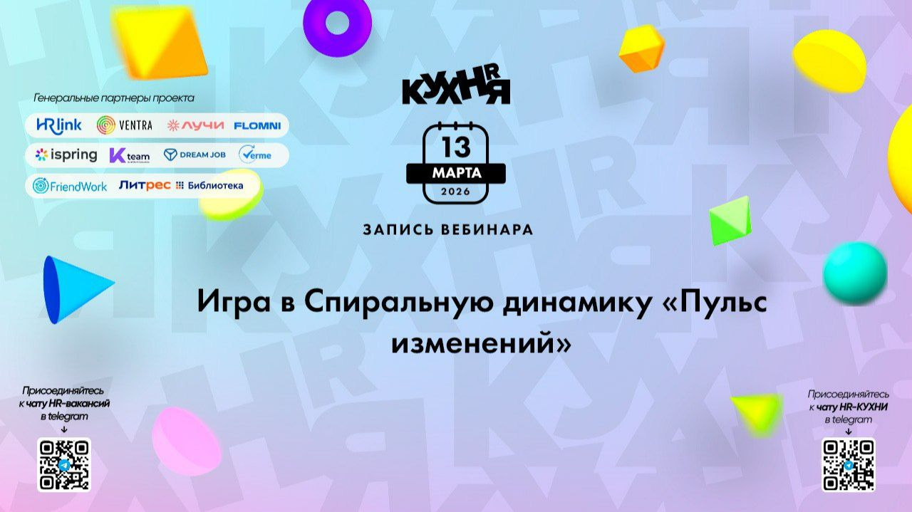 Если вы управляете командами, ведёте трансформации или фасилитируете сессии — это практический инструмент, а не теория. Что внутри: — как использовать спиральную динамику в работе с командами, а не «для галочки» — как синхронизировать людей с разными ценностями на пути к общей цели — где теряется энергия команды и как её возвращать — как проводить команды через неопределенность без выгорания Присоединяйтесь к чатам и каналам HR-КУХНИ в МАХ: HR-КУХНЯ | Ключевое HR-медиа в MAX - https://max.ru/hr_kitchen HR-КУХНЯ | Мероприятия в HR - https://max.ru/hrkitchenjournal Основной чат HR-КУХНИ - https://max.ru/join/8hmnvHea_Fk4VEPHy2fM8W54K3wcpYCv8_WDsFTLOuc Присоединяйтесь к чатам и каналам HR-КУХНИ в телеграм: - Основной чат HR-КУХНИ в телеграм - https://t.me/+tYgAH0PgPQVkOWIy - Канал HR вакансий в телеграм - https://t.me/+CMNAN2u1hjo3M2Ri - Канал HR-EVENTS в телеграм - https://t.me/hr_kitchen - Канал HR JOURNAL в телеграм - https://t.me/hrkitchenjournal Полезные ссылки: - Каталог HR решений - https://hrkitchen.ru/exhibition - График конференций, бесплатных вебинаров, а также бесплатные курсы – https://hrkitchen.ru/ - Стать спикером HR-КУХНИ - https://hrkitchen.ru/speakers - Подписаться на полезную e-mail рассылку от HR-КУХНИ (новости, гайды, чек-листы, подарки от партнеров) - https://hrkitchen.ru/subscribe