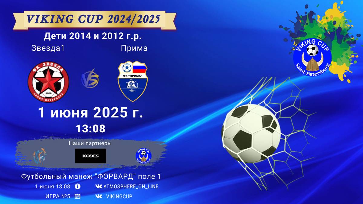 VIKING CUP среди команд 2012-2014 г.р. (U11-U13), Поле 1 1 июня 2025 САНКТ-ПЕТЕРБУРГ, ФЦ "Форвард" ФК "Звезда1" - ФК "Прима"/VIKING CUP, Игра №5, 01-06-2025 13:08