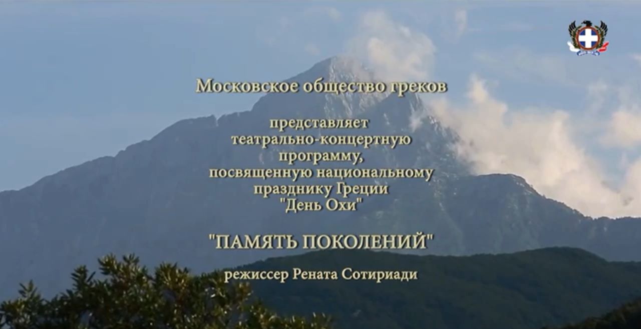 Театрально-концертный вечер, посвященный национальному празднику Греции “День ОХИ” Спектакль “Память поколений” Режиссер - Рената Сотириади Концертный зал “Измайлово” 28 октября 2018 _________________________________ Московское общество греков https://www.greekmos.ru/