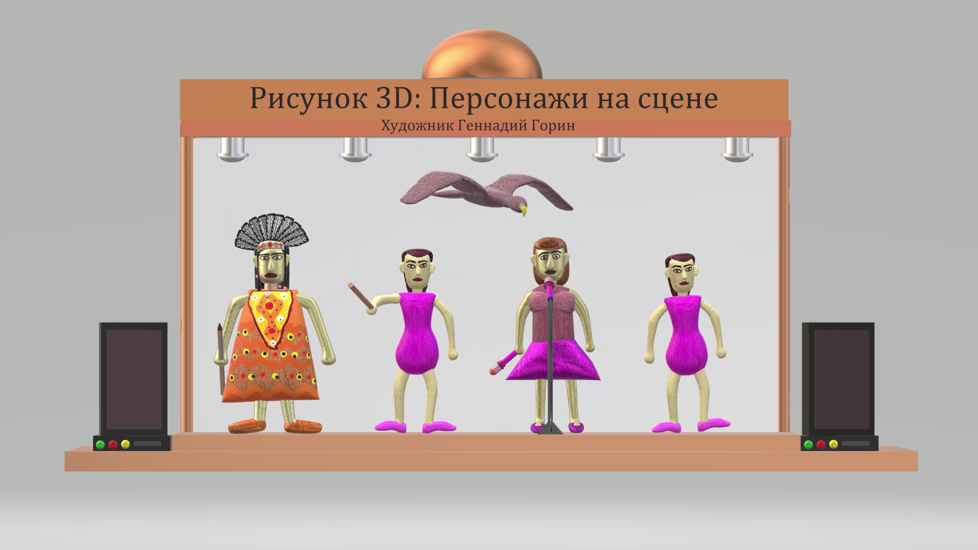 Рисунок 3D: Персонажи на сцене. Видео 2024 год
