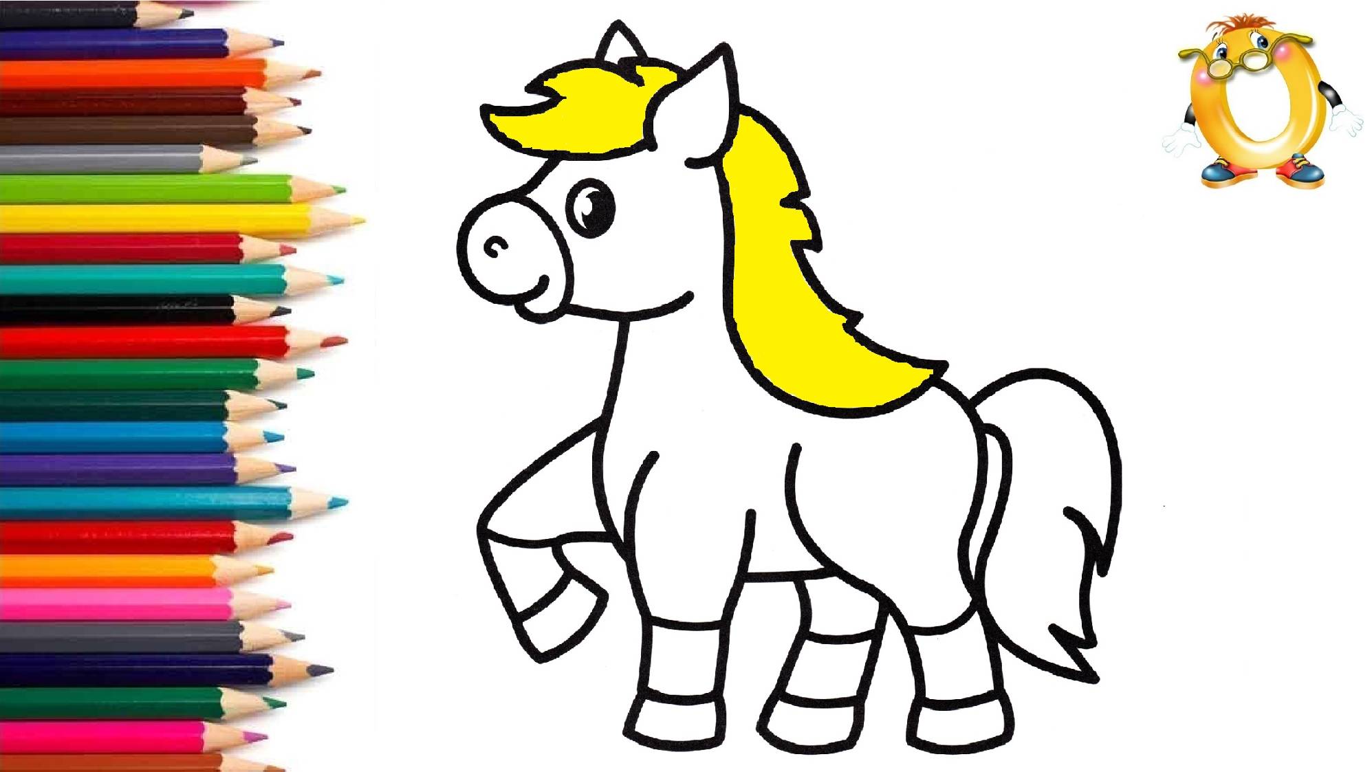 Мультик - раскраска для детей ЛОШАДКА. Учимся как рисовать ЛОШАДЬ вместе с детьми.