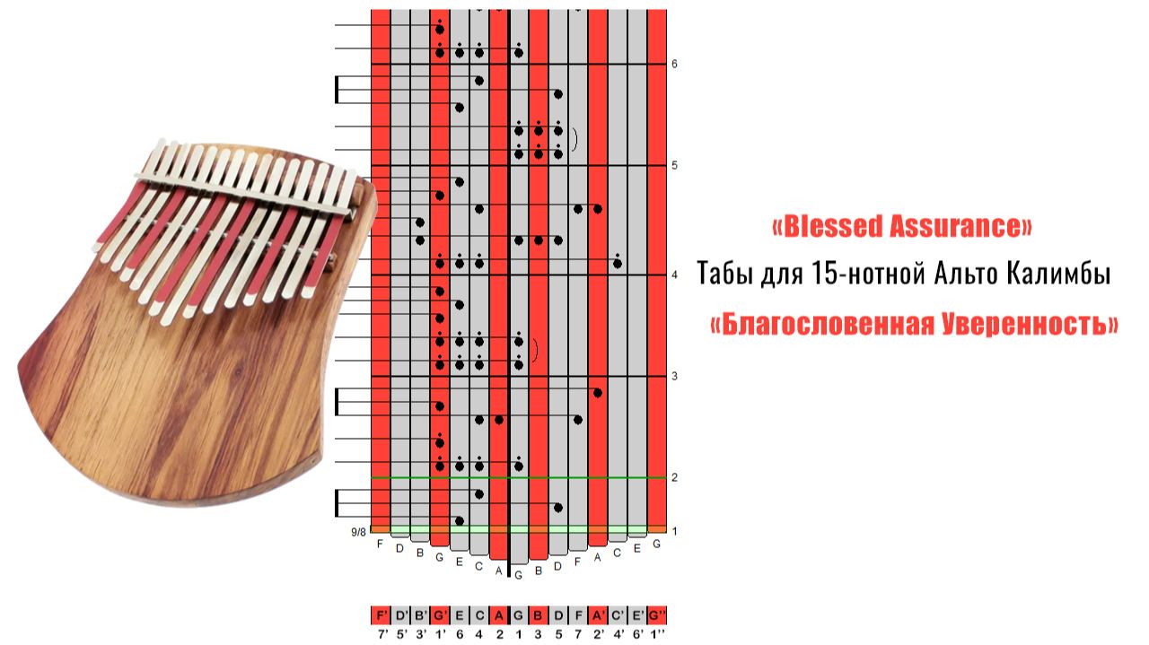 «Blessed Assurance». Табы для 15-нотной Альто Калимбы
