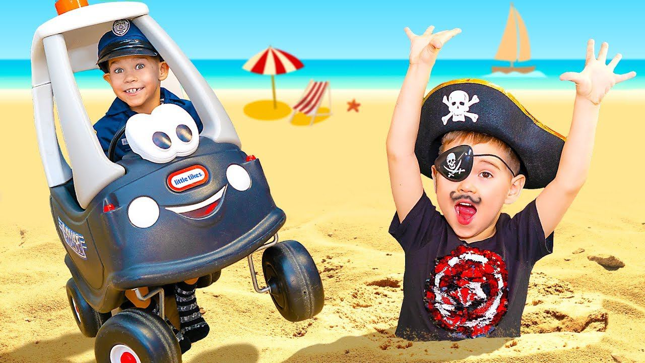 Эрик и Глеб вместе играют в пиратов и полицейских. Полицейский получил нового напарника. Это забавная игрушечная полицейская машина. Вместе они расследуют преступление. Пират застрял в песке, пряча свой клад. Но полицейский и игрушечная машина помогли ему выбраться из песка. #ErikShow ► Vkontakte: https://vk.com/erik_show