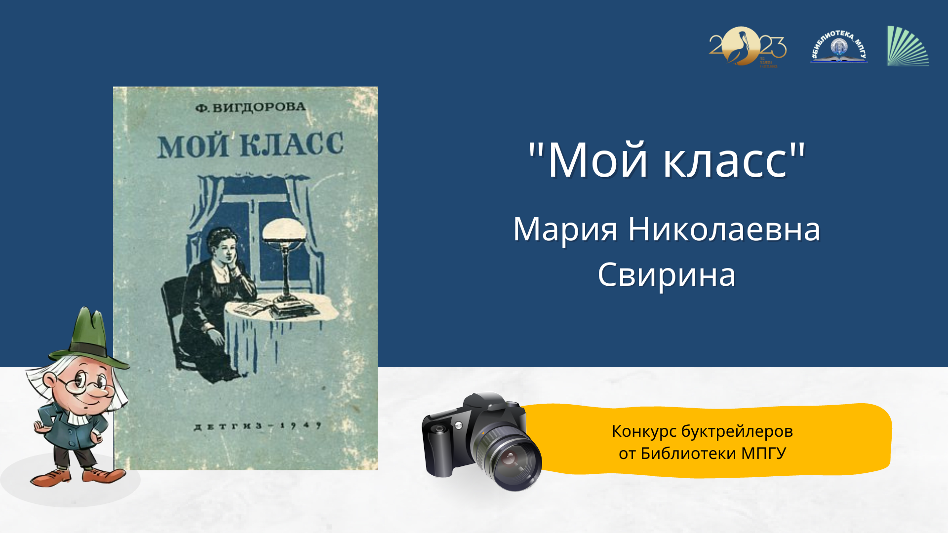 В мае 2023 года, в рамках Года педагога и наставника, Библиотека МПГУ проводит конкурс буктрейлеров "Наш друг Пишичитай: педагоги и наставники на страницах любимых книг". Мария Николаевна Свирина рассказывает о книге Фриды Вигдоровой "Мой класс".