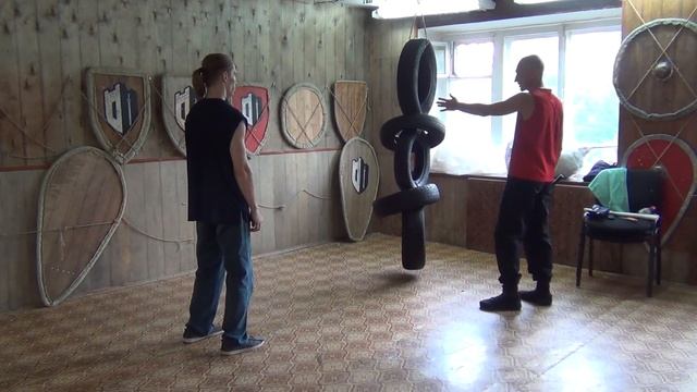 Применение сдвоенного бокового шага как одного из элементов комплекса перемещений, используемых в бою с группой противников.