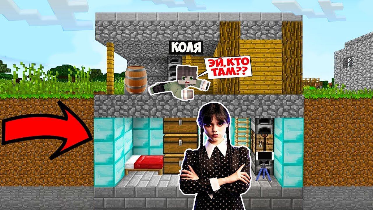 ВСЕ ЭТО ВРЕМЯ УЭНСДЕЙ АДДАМС ЖИВЕТ ПОД МОИМ ДОМОМ В МАЙНКРАФТ MINECRAFT WEDNESDAY ADDAMS